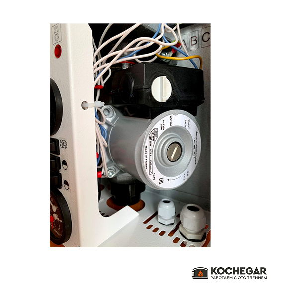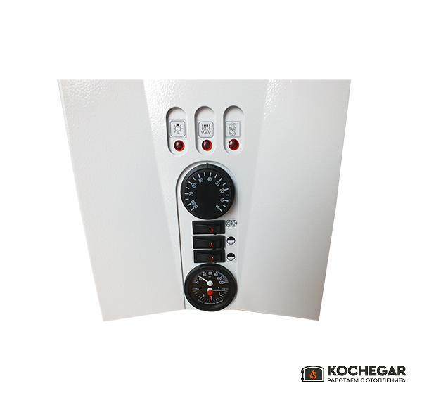 Котел оснащён встроенной автоматикой для регулировки температуры и защитой от перегрева, что делает его безопасным и удобным в эксплуатации. Подходит для систем радиаторного отопления и тёплого пола.