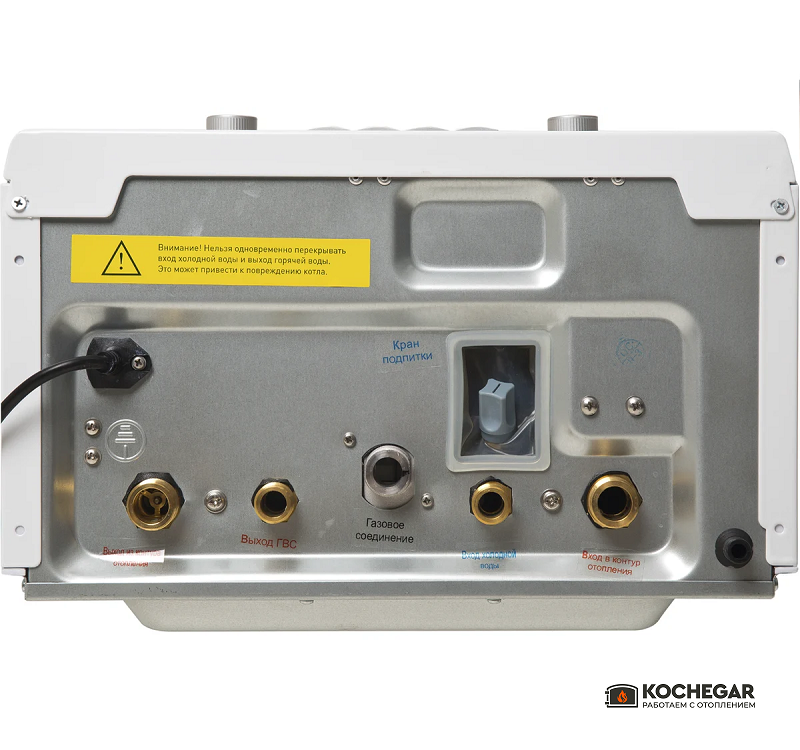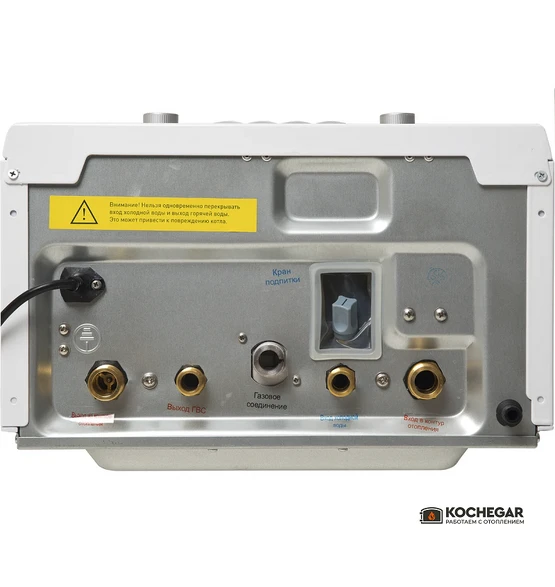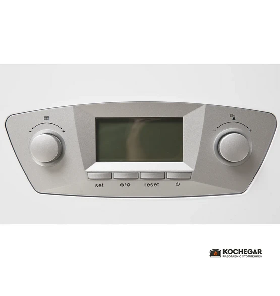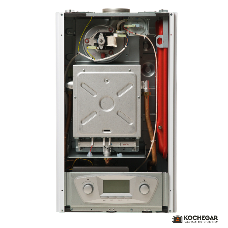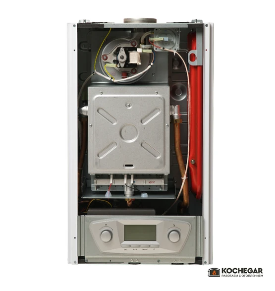 Конструкция котла включает два раздельных теплообменника: медный для отопления и пластинчатый из нержавеющей стали для контура горячего водоснабжения. Такое решение повышает надёжность и продлевает срок службы оборудования, снижая риск образования накипи.