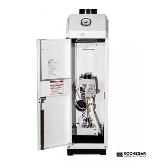 Котёл работает на природном газе и подключается к дымоходу. Простая и надёжная автоматика EUROSIT 630 (Италия) вместе с горелками Polidoro обеспечивает стабильную работу и безопасную эксплуатацию. Конструкция не требует подключения к электросети — запуск выполняется с помощью пьезорозжига.