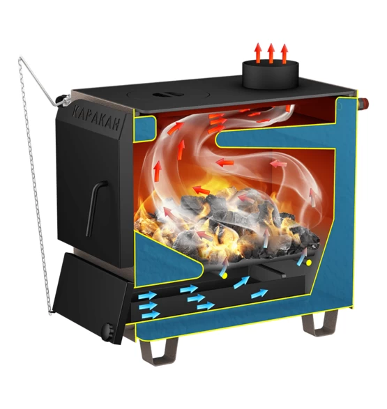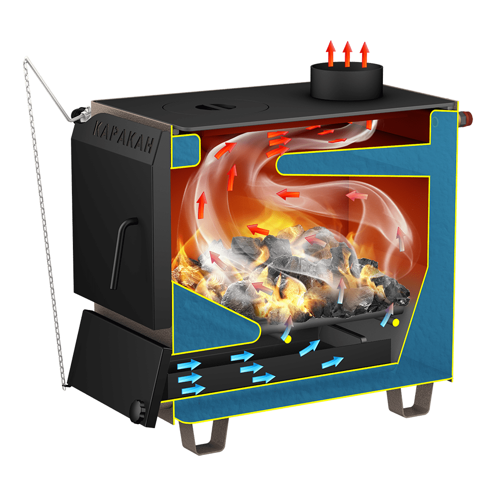 Твердотопливный котёл Каракан 8ТПЭ с варочной поверхностью — компактное решение для отопления домов и дач площадью до ~80 м². Модель рассчитана на работу на дровах, угле и топливных брикетах и оснащена полноценной плитой (1 конфорка) для приготовления и подогрева пищи. Котёл подходит для систем с естественной и принудительной циркуляцией, совместим с водой и специализированными теплоносителями (антифризами, разрешёнными для систем отопления).