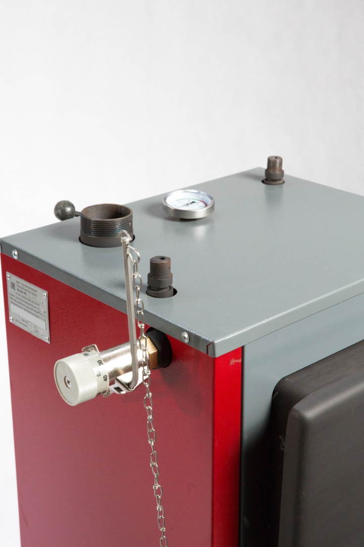 - Регулятор тяги обеспечивает автоматическое поддержание заданной температуры теплоносителя, регулируя подачу воздуха в камеру сгорания. Это помогает экономить топливо и предотвращает перегрев котла.