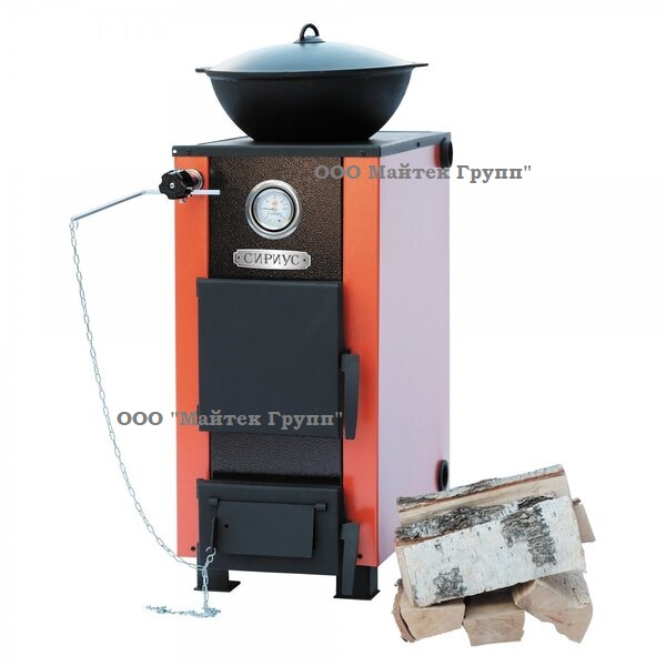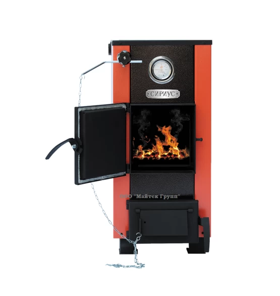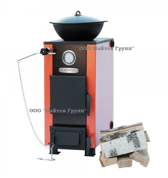 Котел твердотопливный Сибирь Сириус 15 кВт с варочной поверхностью обеспечивает обогрев помещений площадью от 100 м2 до 150 м2. Корпус котла изготовлен из конструкционной стали марки Ст.3 СП5 толщиной 3 мм. Снаружи котел облицован металлическим кожухом, окрашенным полимерной краской в фирменных цветах завода "НМК". Варочная поверхность выполнена по запатентованной технологии из стали толщиной 12 мм, что делает ее использование долговечным и практичным. Котел серии "Сириус" в модификации 15 кВт отличается высокой производительностью и повышенным КПД полученного за счет внедрения дополнительных теплосъемных элементов, расположенных внутри котла. Стальная варочная плита ограничена снаружи металлическим уголком, обеспечивающим плотное прилегание к поверхности котла и создающее дополнительную эстетику. Расположенное с оборотной стороны варочной плиты кольцо усиления защищает ее от деформации при перепадах температур. Наличие верхнего отверстия в плите, закрытого чугунными конфорками позволяет производить через него загрузку угля. Конструкция корпуса котла "Сириус" позволяет устанавливать автоматический регулятор тяги в качестве дополнительной опции. Верхний патрубок подачи котла расположен в самой высокой точке корпуса, что предотвращает возможность скопления воздуха в системе отопления.